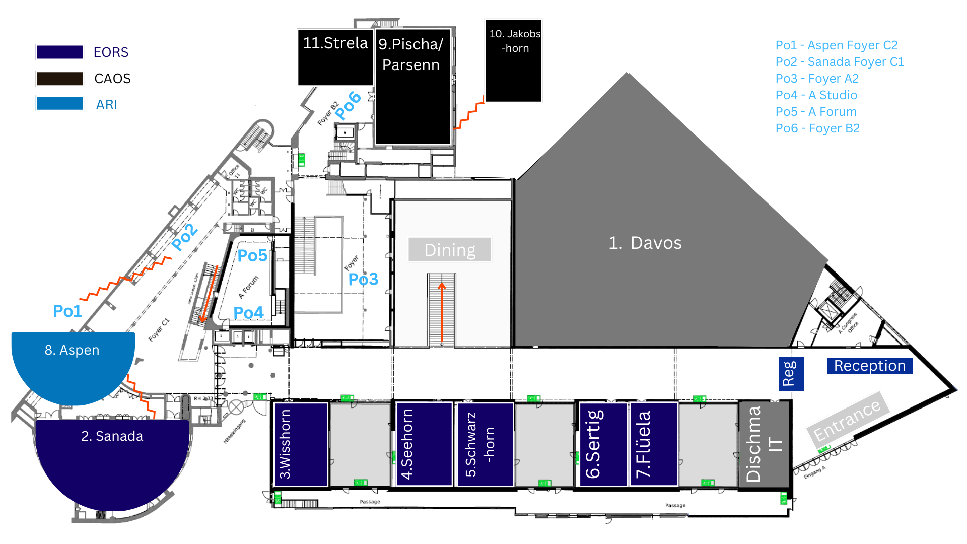 - Posters will be arranged numerically and organized by topic. A poster map will be displayed next to the poster area and be available at the registration desk.